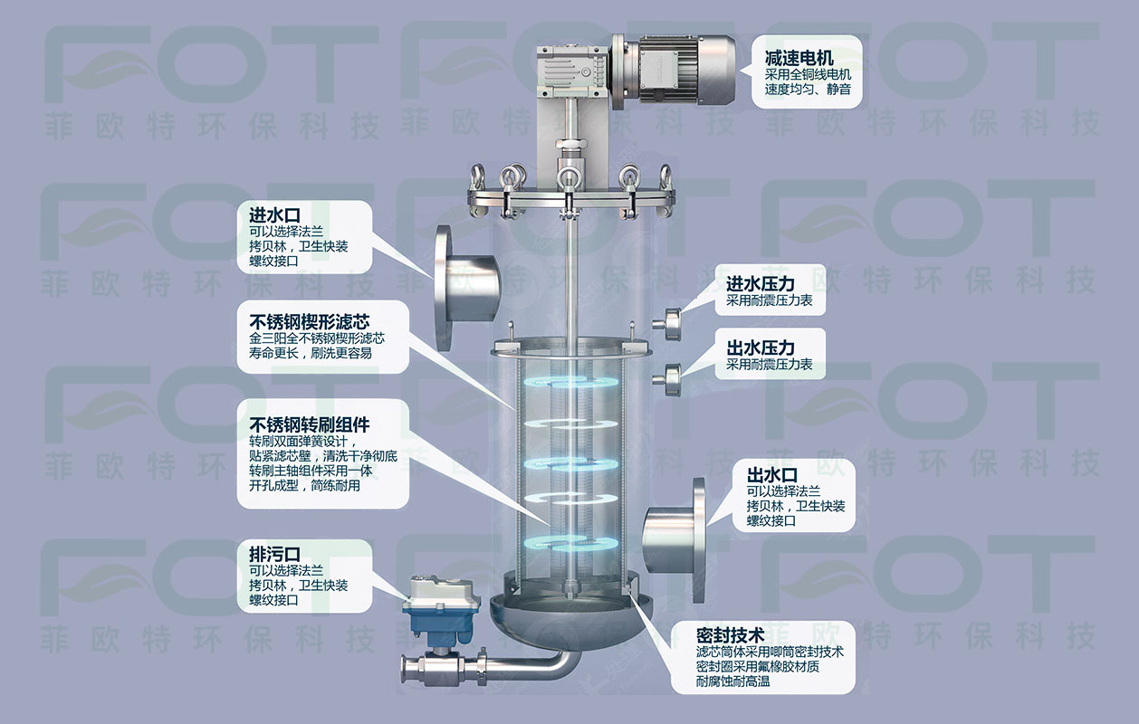 菲欧特系列全自动清洗过滤器是一种网式过滤器,根据压差或时间自动进行清洗,具有过滤精度较高,清洗彻底的优点,广泛应用于工业用水,污水处理
